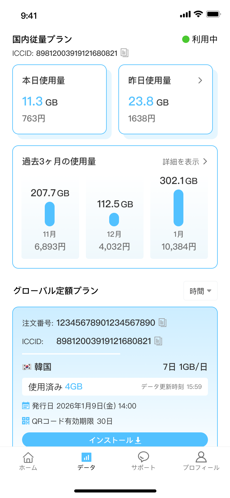 国内データも、海外eSIMも、まとめて管理・購入・利用できる通信アプリです。