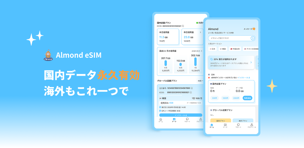 Almond eSIMをダウンロードして、無料1GB国内データを受け取ってください!..